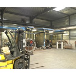- 8 box d'ébarbage avec aspiration, équipés en meuleuses Haute fréquence et à air comprimée avec palan de 125kg à 1t